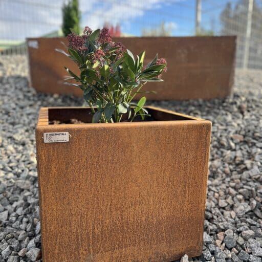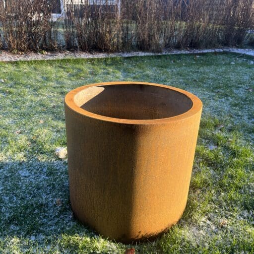 Våra produkter i cortén levereras nytillverkade i sin ursprungliga mörkgrå stålfärg.
